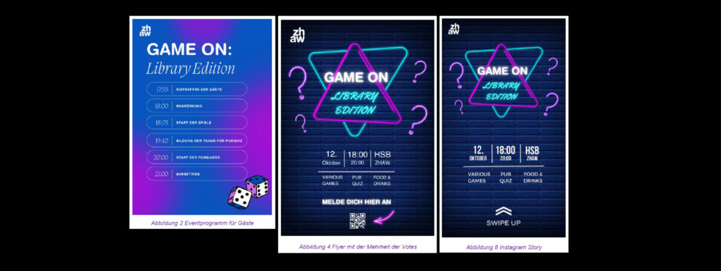 In diesem Projekt stellte sich das Team die Aufgabe, die ZHAW Hochschulbibliothek lebendiger zu gestalten. So entstand die Idee „Game On: Library Edition“ – ein einzigartiges Event in der ZHAW Hochschulbibliothek, das darauf abzielt, soziale Interaktionen und Vernetzung unter Student:innen zu fördern. In Reaktion auf die Digitalisierung von Lehrveranstaltungen hat das Projektteam die Bibliothek in einen einladenden Ort des Vergnügens verwandelt. Anstatt nur in Prüfungsphasen besucht zu werden, soll die Bibliothek nun eine entspannte Atmosphäre für Freizeitaktivitäten bieten. Der Event verspricht eine unterhaltsame Nacht mit lustigen Spielen aller Art, indem sich Student:innen in einer entspannten Umgebung vernetzen.